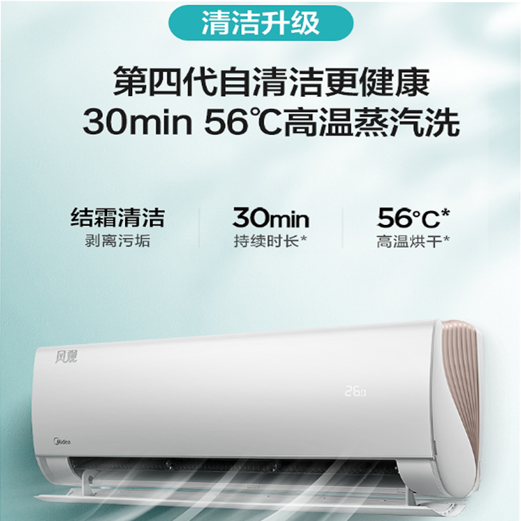 美的新一級壁掛式空調控溫升級,自動調溫呵護健康。