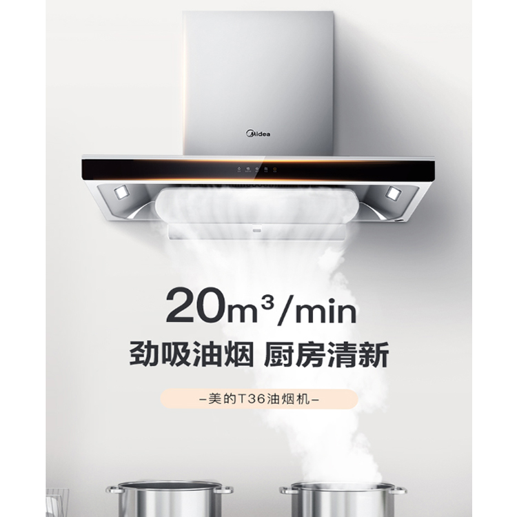 美的家用歐式油煙機迅猛大吸力,無懼廚房油煙。