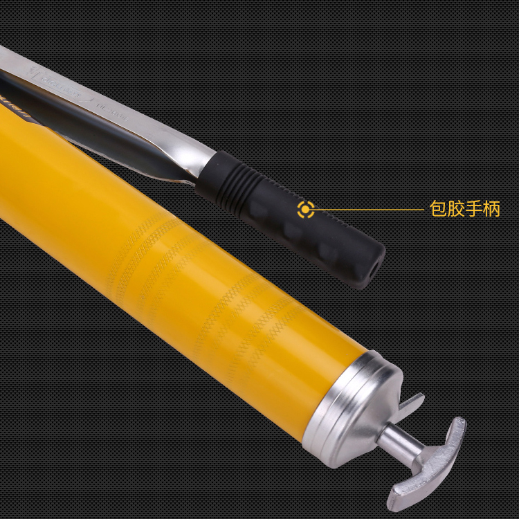 黃油槍鋁合金槍頭、回油螺旋設計、包膠手柄