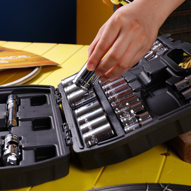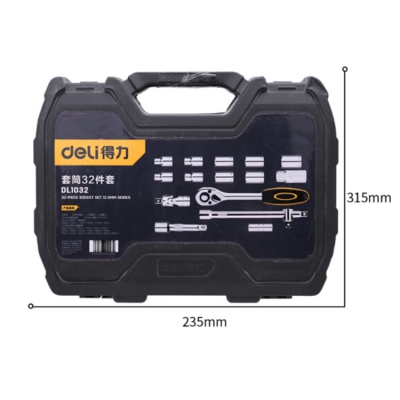 得力(deli) 12.5mm系列套筒組套棘輪扳手套筒組合汽車維修工具套裝大飛32件套