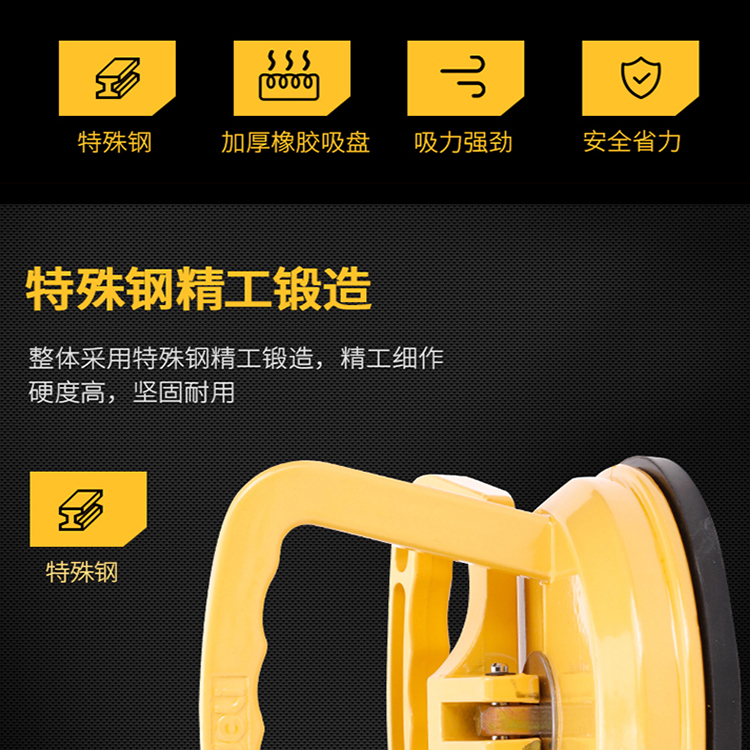 特殊鋼鑄造,加厚橡膠吸盤、吸力強勁、工程塑料壓扣。
