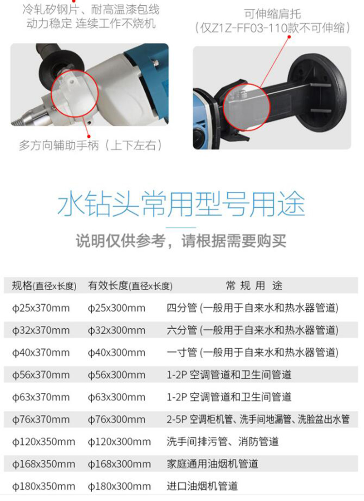東成鋪管機(電鉆)Z1K-FF-150,根不同用途的需求,選用不同的鉆頭