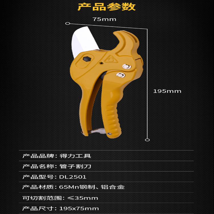 得力(deli) PVC管子割刀65Mn鋼刀刃 可切割管徑35mm刀刃采用65Mn鋼制作而成,