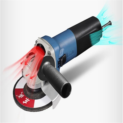 東成角向磨光機(jī)大口徑進(jìn)出風(fēng)口,空氣流經(jīng)筒體,充分帶走機(jī)芯熱量