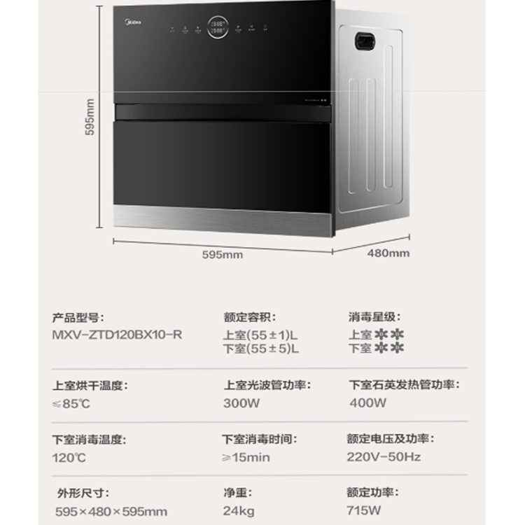 美的(Midea)消毒柜家用 嵌入式 紫外線 碗柜 碗筷 智能WIFI控制 110L