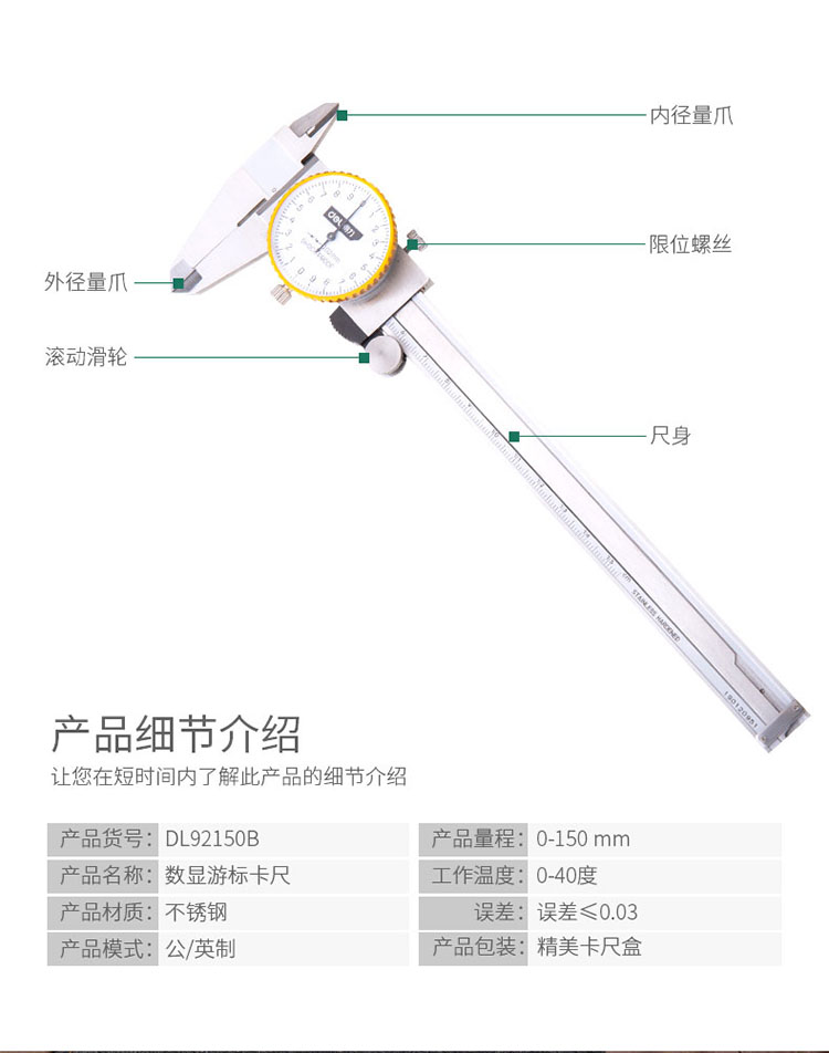 產品名稱: 表盤式游標卡尺150mm