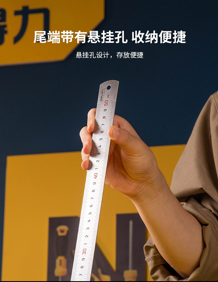 得力工具金屬鋼直尺鐵尺不銹鋼尺子加厚刻度鋼板尺測量繪圖尺