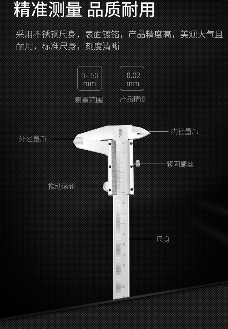 采用不銹鋼尺身,表面鍍格,產(chǎn)品精度高,美觀大氣且