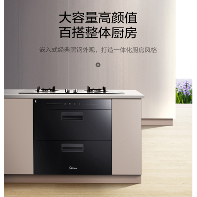 美的嵌入式消毒柜長效烘干,碗碟干爽潔凈更耐存。