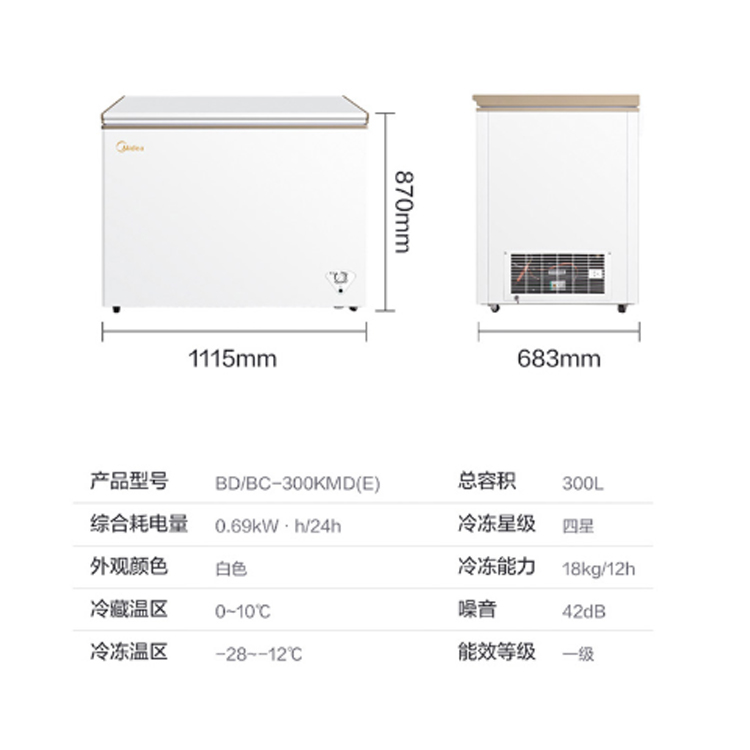 美的臥式冷凍冰柜300L大容量,海量食材輕松裝。