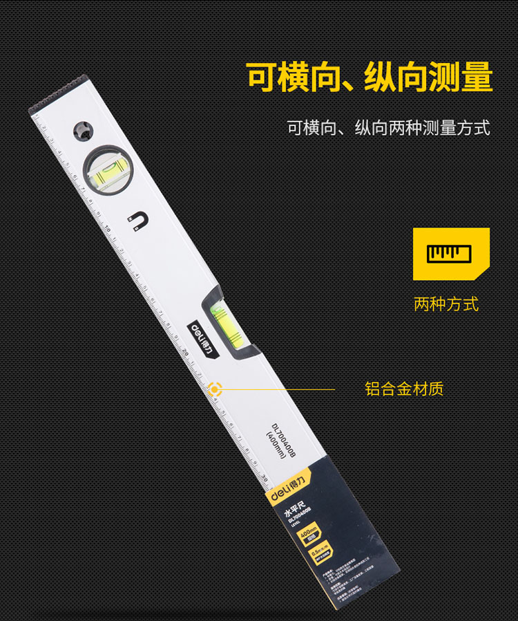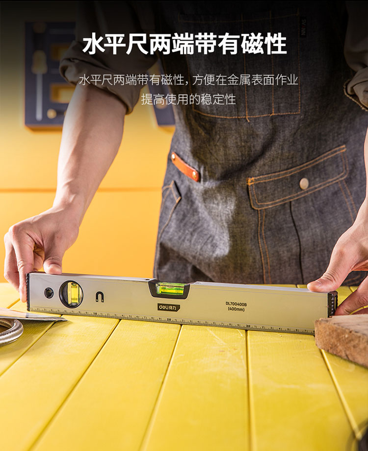得力水平尺高精度平水尺磁性鑄鋁迷你家用裝修平衡尺靠尺