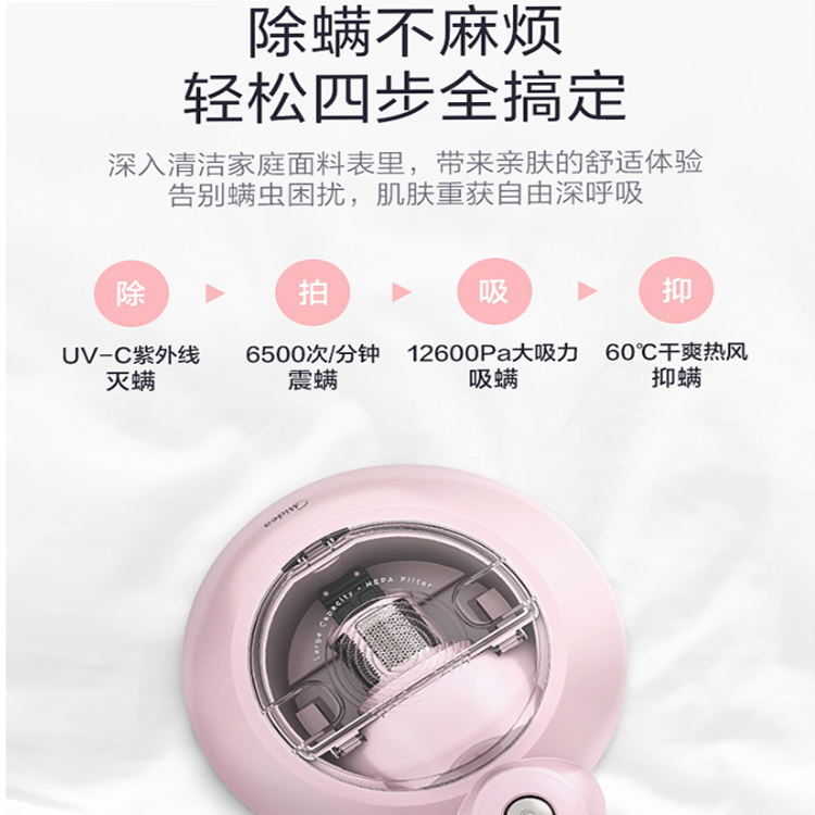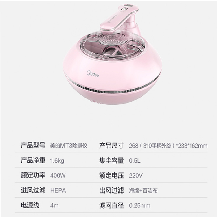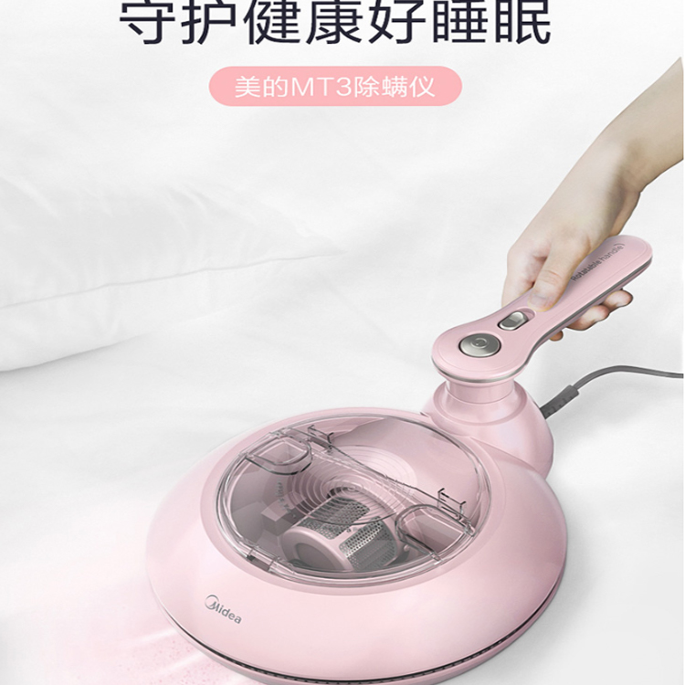 美的(Midea)除螨儀MT3 有線手持床上家用吸塵器 冰瑩粉 紫外線殺菌除螨