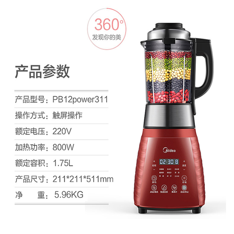 美的家用破壁機分段熬煮,翻滾倍營養。