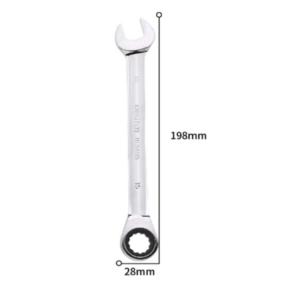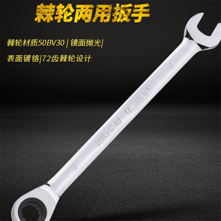 得力鏡面梅花兩用扳手棘輪材質為50BV30,扳體材質為鉻釩鋼。