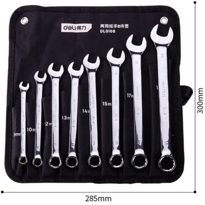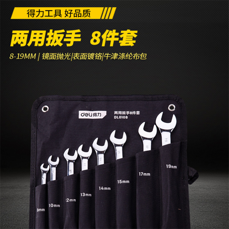 得力工具兩用扳手套裝8件組套鏡面兩用扳手