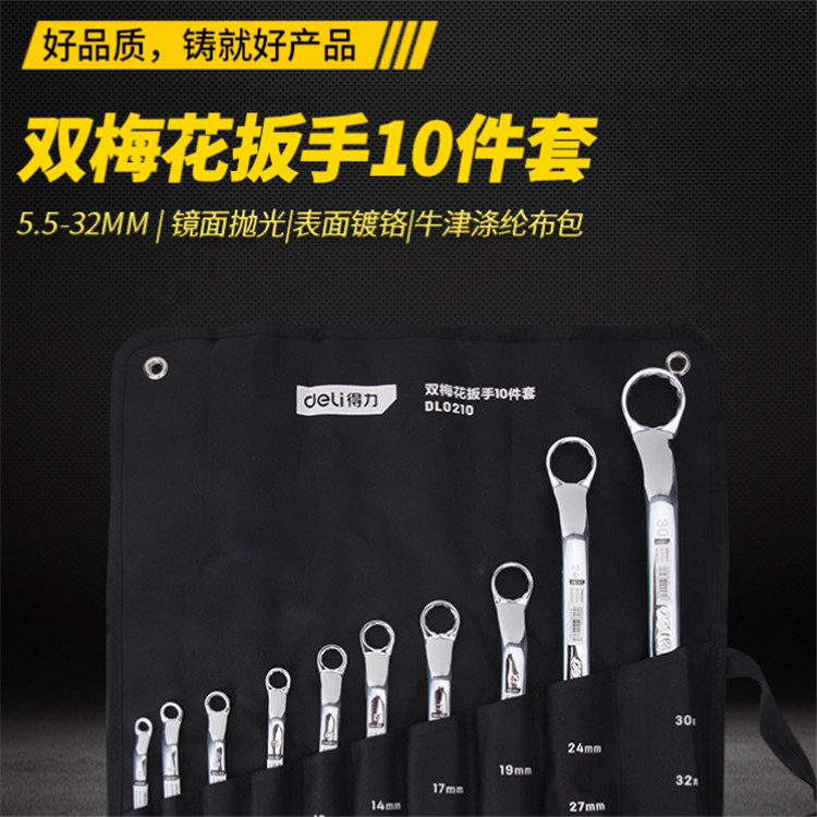 得力雙頭梅花扳手組套十件套,更方便應對各種場合。