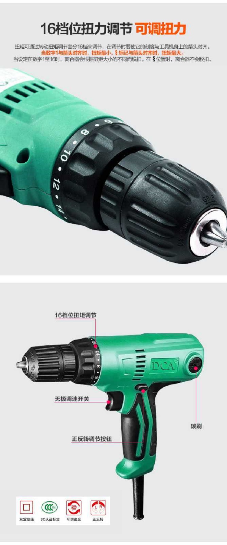 DCA電動工具家用手電鉆調速扭力手電鉆起子機螺絲刀J1Z-FF08-10