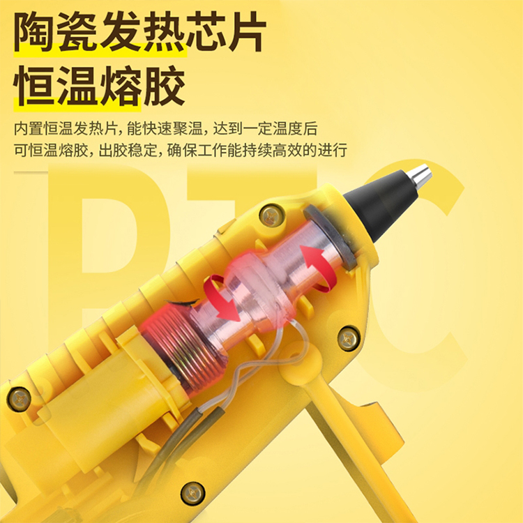 鋰電熱熔膠槍陶瓷發熱芯片恒溫熔膠內置恒溫發熱片,能快速聚溫