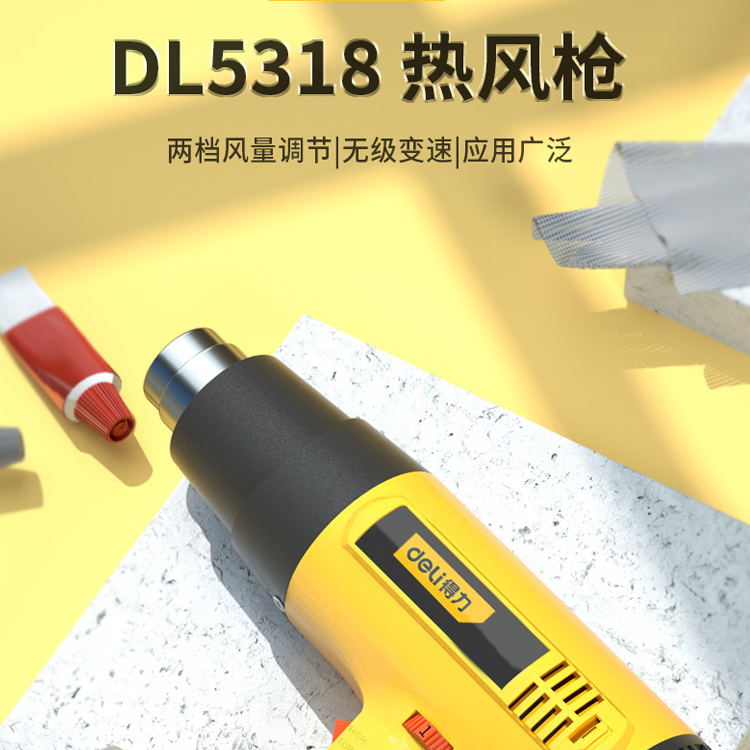 寧波得力調(diào)溫?zé)犸L(fēng)槍DL5318功率尼龍和ABS吸熱收縮功能