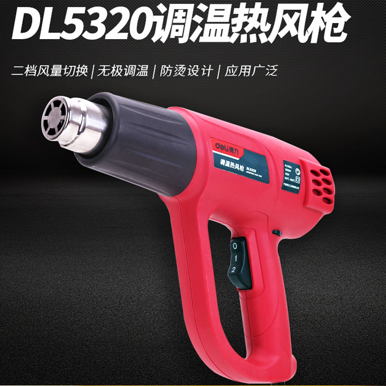 得力調溫熱風槍DL5320烤槍尼龍不銹鋼材質吸熱收縮軟化熱風機