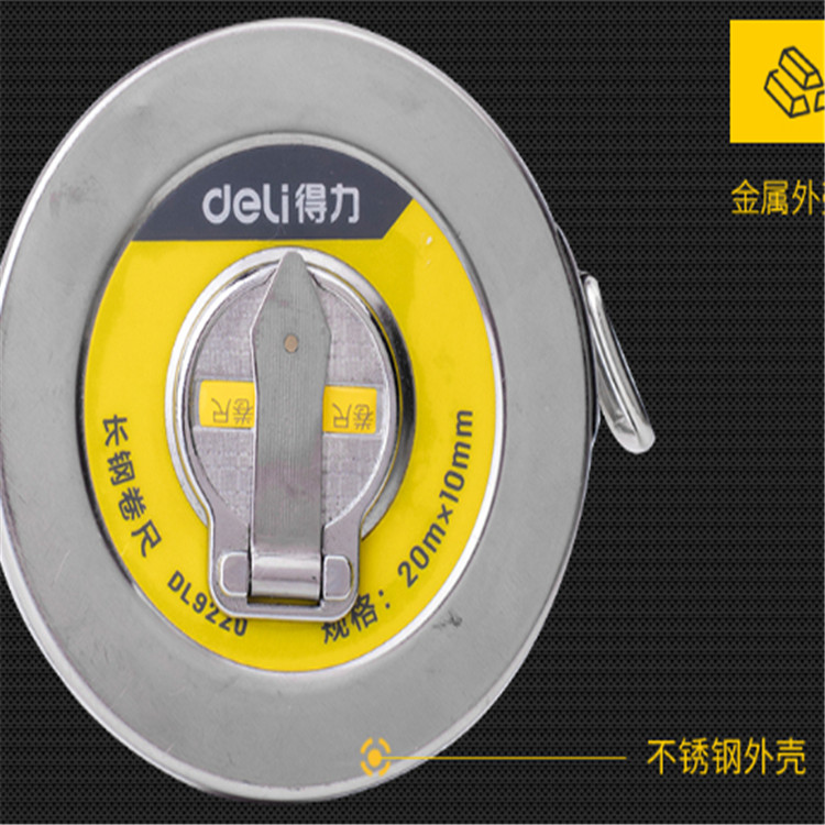 得力長(zhǎng)鋼卷尺10m高精度不銹鋼尺木匠工業(yè)工程測(cè)量尺