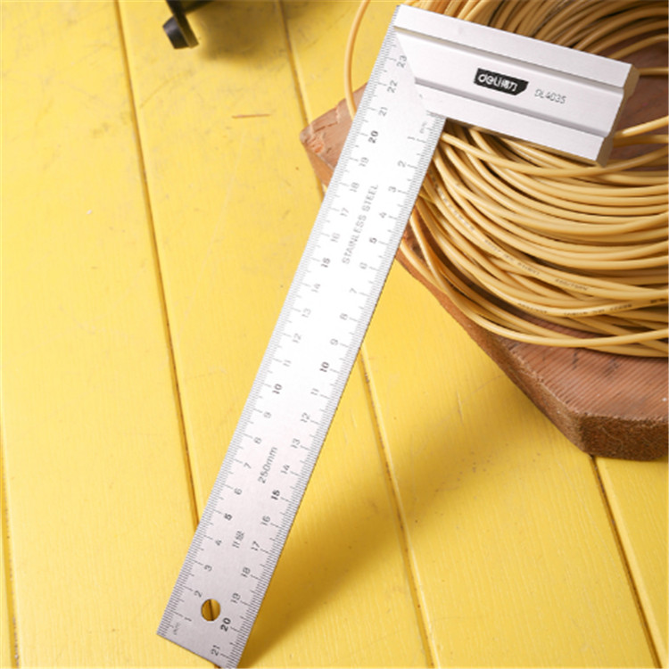 得力鋼角尺250mm尺身與底座連接緊固,測(cè)量精準(zhǔn)。