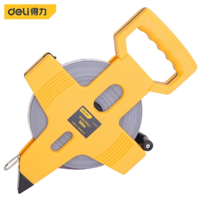 得力塑殼架式鋼卷尺100m×12.5mm卷尺大鋼卷尺工地測量