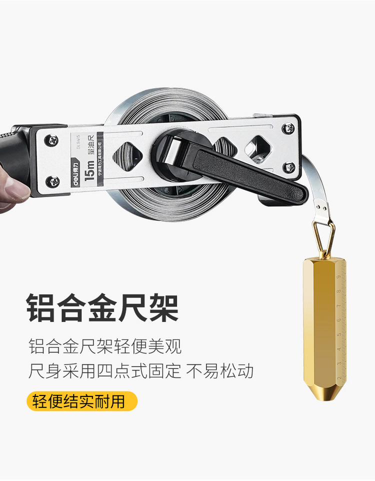 得力量油尺柴油石油油罐測深尺銹鋼銅頭碳鋼尺帶 測量5米25米15m