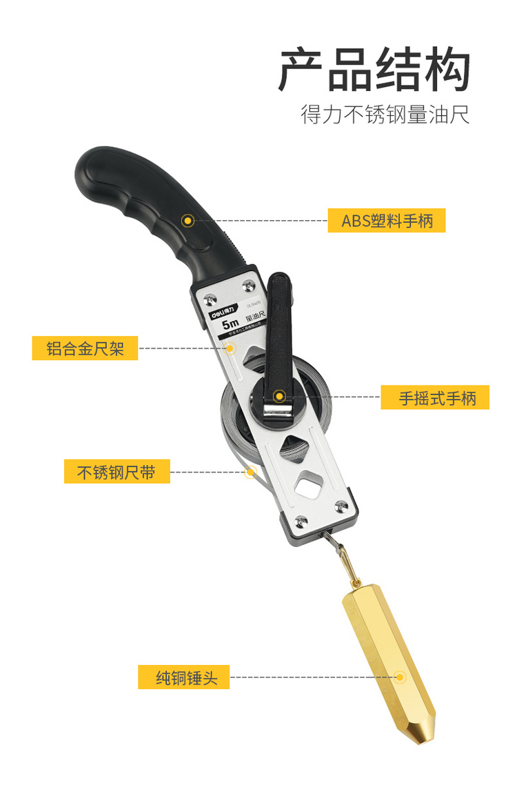 量油尺采用ABS塑料手柄,結實耐用,操作靈活