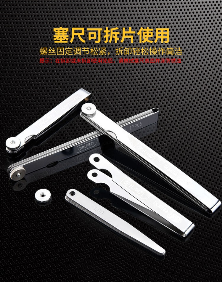 得力塞尺楔形單片不銹鋼高精度套裝調氣門火花塞規厚薄間隙專用