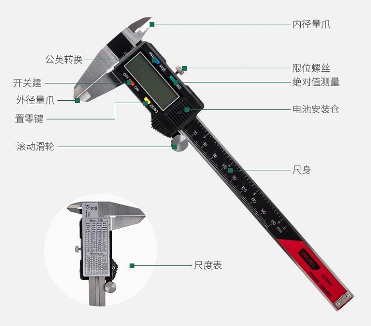 游標卡尺有圓滑的金屬滑輪,輕松拉到讀數