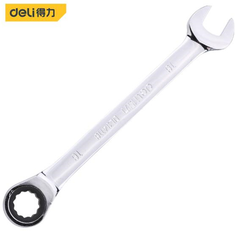 得力鏡面棘輪兩用扳,表面鍍鉻,標準扭矩壽命可達5000次