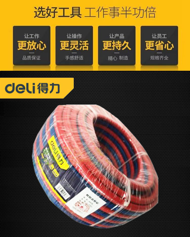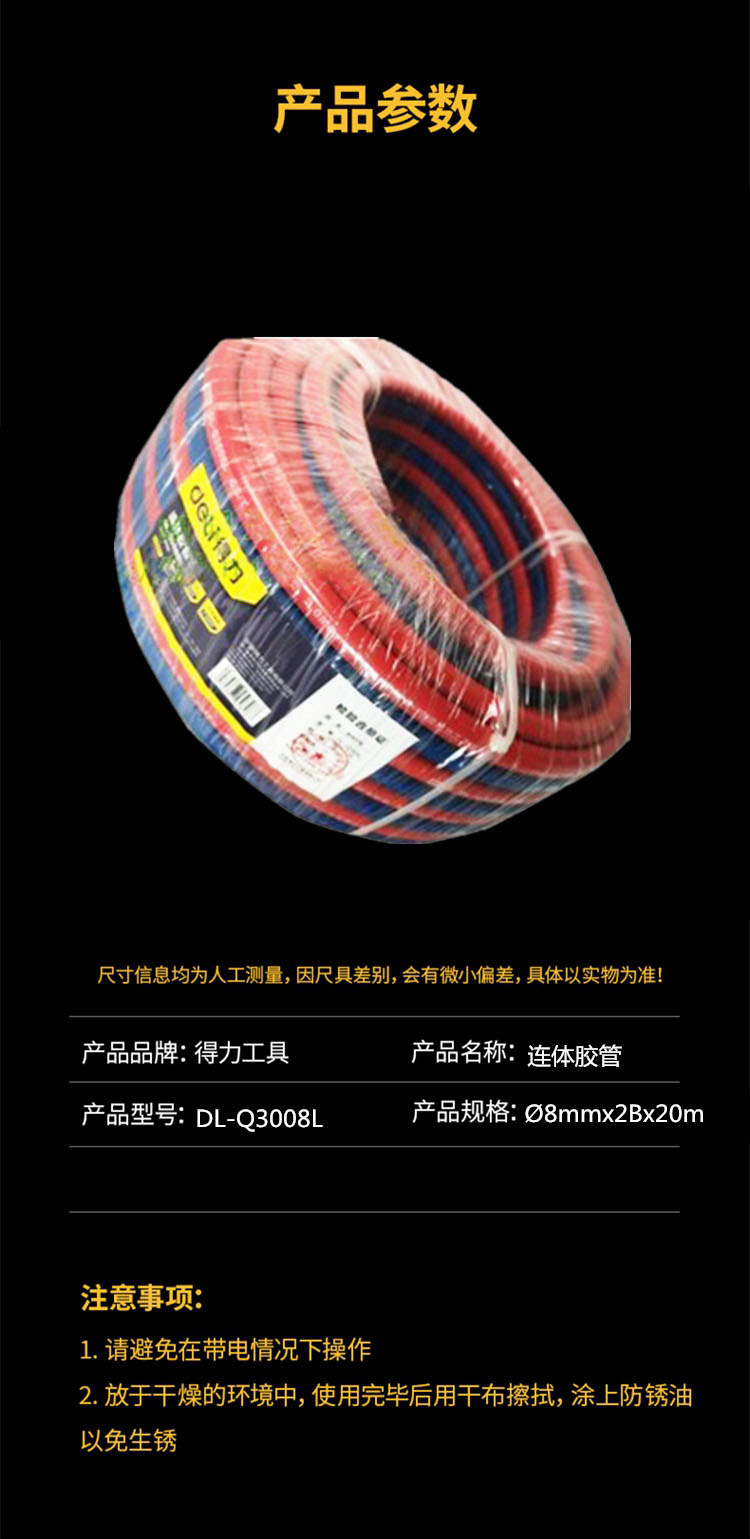 得力工具 8mm連體膠管 20米氧氣管乙炔管氣焊橡膠割管 DL-Q-3008L