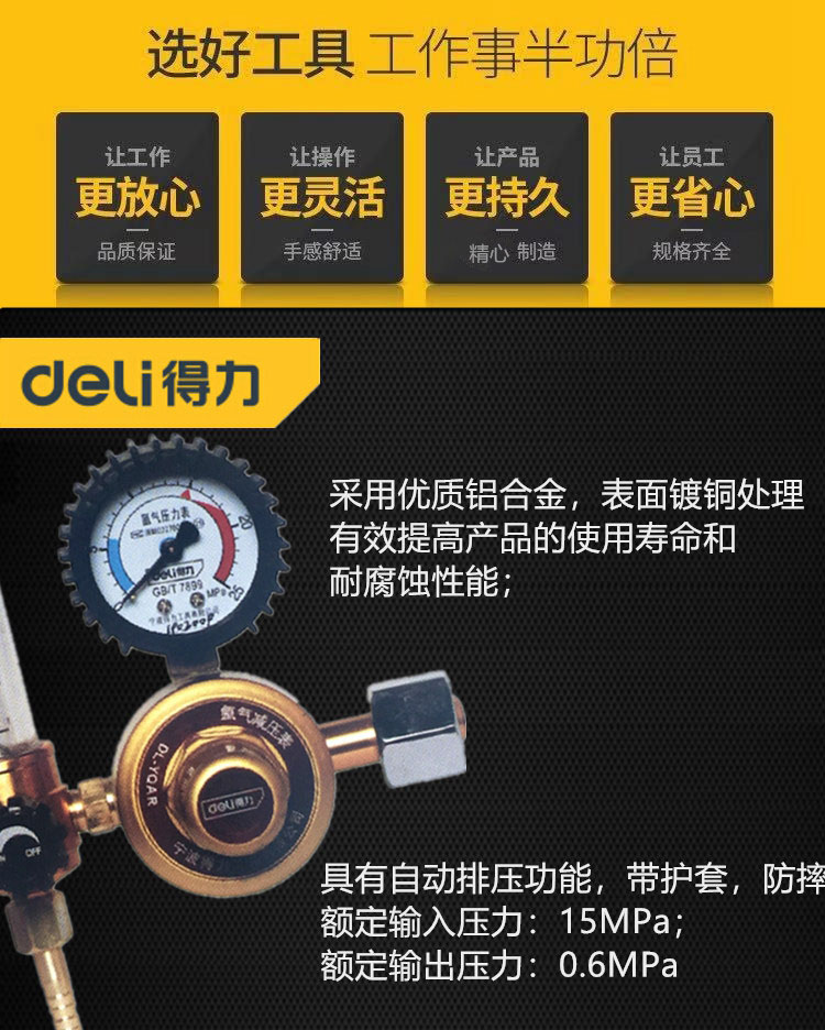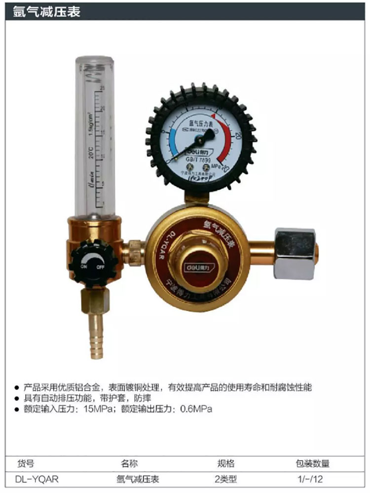 得力工具氬氣減壓表DL-YQAR-A A型氬氣減壓表焊割工具