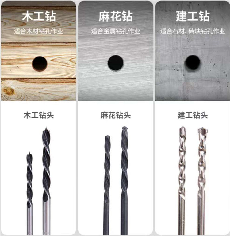 麻花鉆(2/3/4/5/6mm)各1 建工鉆(4/5/6/8/10mm)各1 木工鉆(4/5/6/8mm)各1