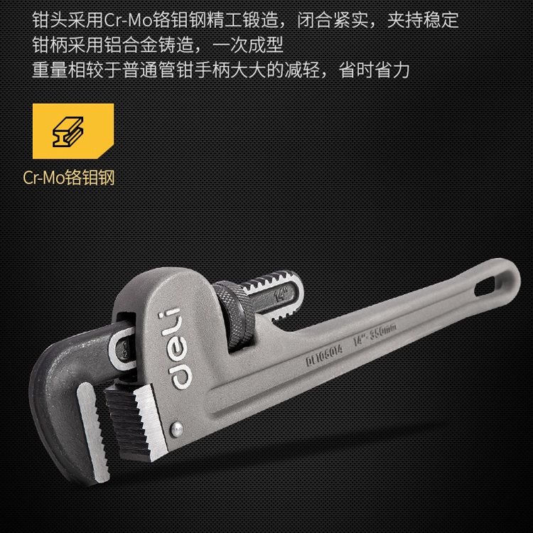 得力超輕鋁合金管子鉗子工業級水管鉗家用大號水管扳手活動管子鉗