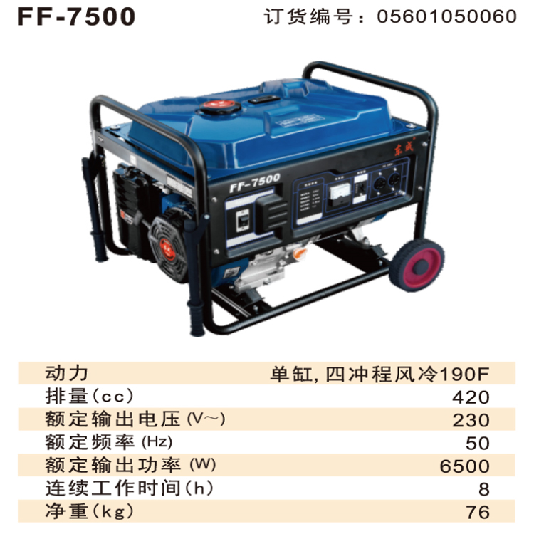 東成汽油發電機FF-7500單缸 四沖程風冷風冷汽油機啟動方便、