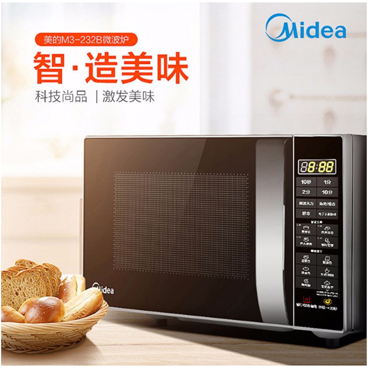 美的(Midea)M3-232B 多功能家用微波爐 光波燒烤電烤箱一體機 智能濕度感應(yīng)