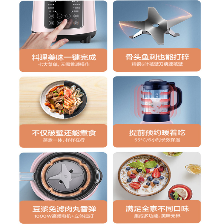 美的家用高溫破壁機含七大營養菜單,全家營養一齊滿足。