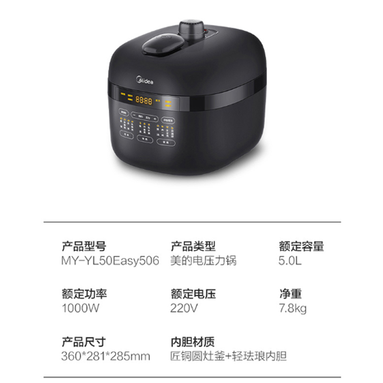美的滑動(dòng)開蓋電壓力煲 MY-YL50Easy506+美的電飯煲4L智能預(yù)約MB-40LS06