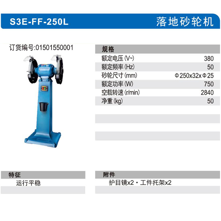 電動砂輪機S3E-FF-250L小型臺式磨刀沙輪工業級三相立式磨石機,
