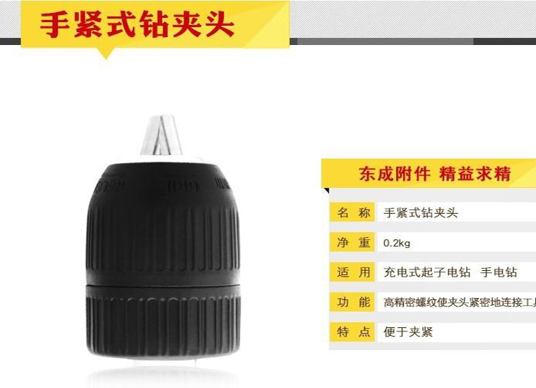 東成電動工具附件鉆夾頭10-13mm自鎖手緊式快速夾頭高精密螺紋,便于加緊。