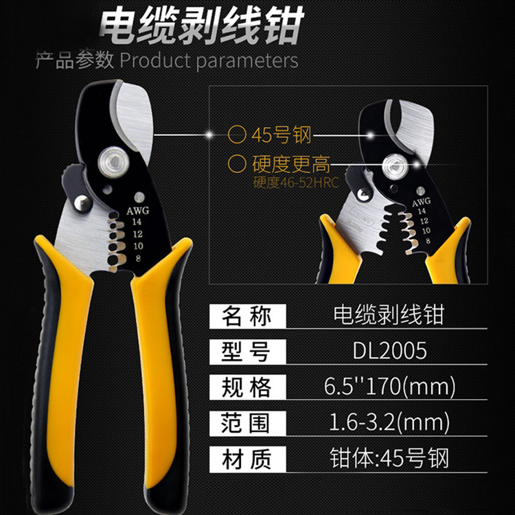 電纜剝線鉗DL2005(1.6-3.2mm)產品參數