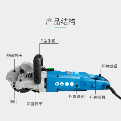 軟啟動(dòng),漏電保護(hù),伸縮保護(hù)罩,開槽深可調(diào)節(jié),可外接吸塵器。