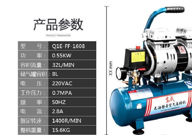 東成無油靜音空壓機Q1E-FF-160東成機器多用途,性能高效,舒適手感,安全可靠