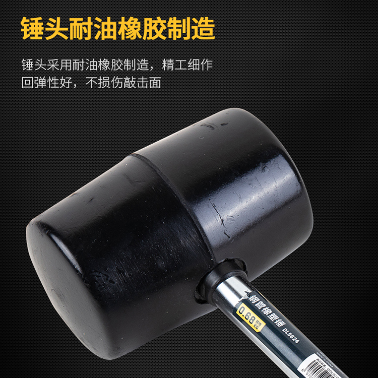 得力工具鋼管柄橡膠錘子DL5624橡塑錘圓頭錘,錘頭硬度高,