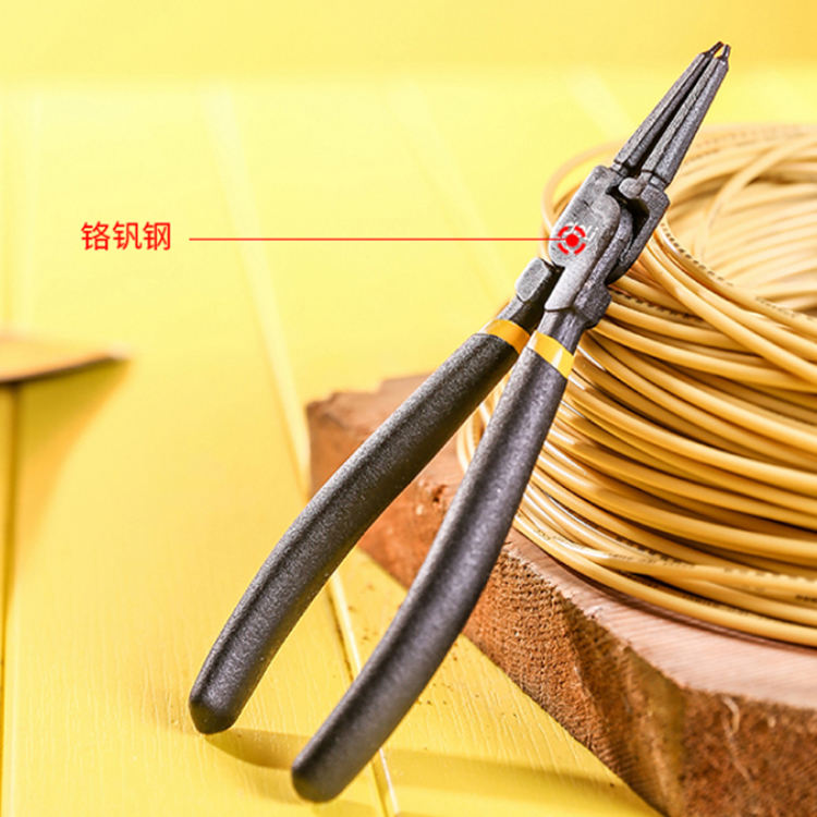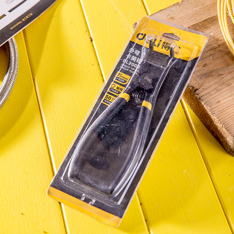 得力外彎卡簧鉗DL20024檔圈鉗鈾用穴用鉗,