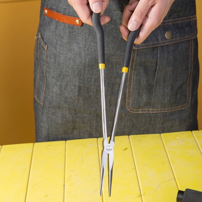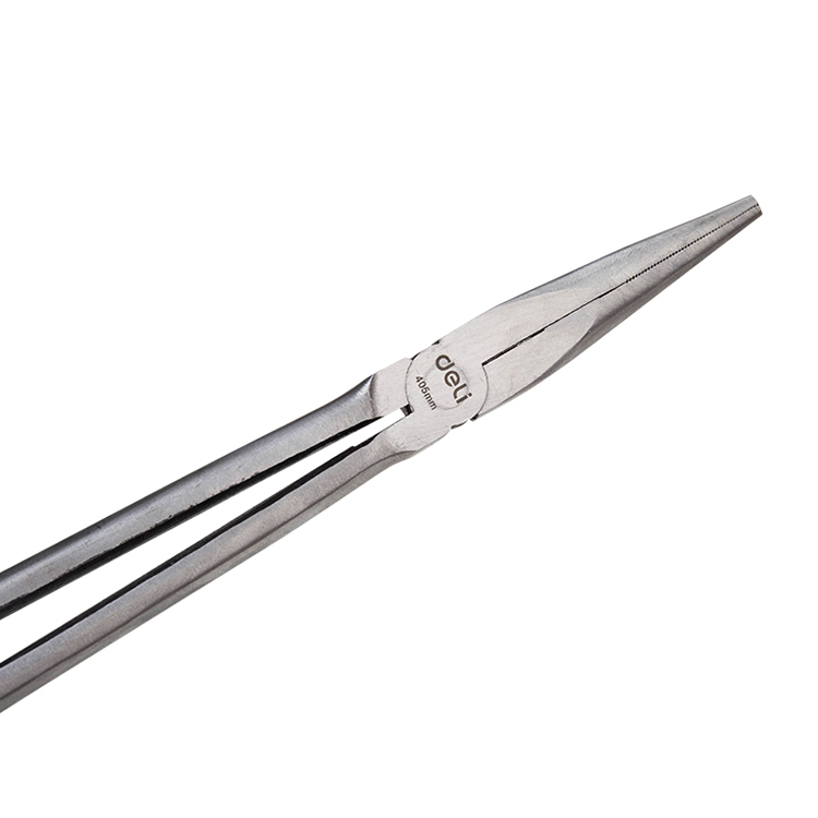 得力工具加長尖嘴鉗子DL21016,高碳鋼精工鍛造,鉗頭發(fā)黑處理,兩面精拋。