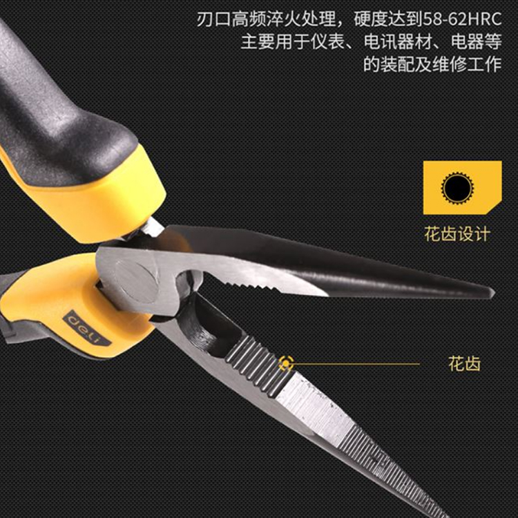 得力膠柄尖嘴鉗DL2106Z鉻釩鋼夾持鉗手柄,外觀專利設(shè)計,舒適防滑。