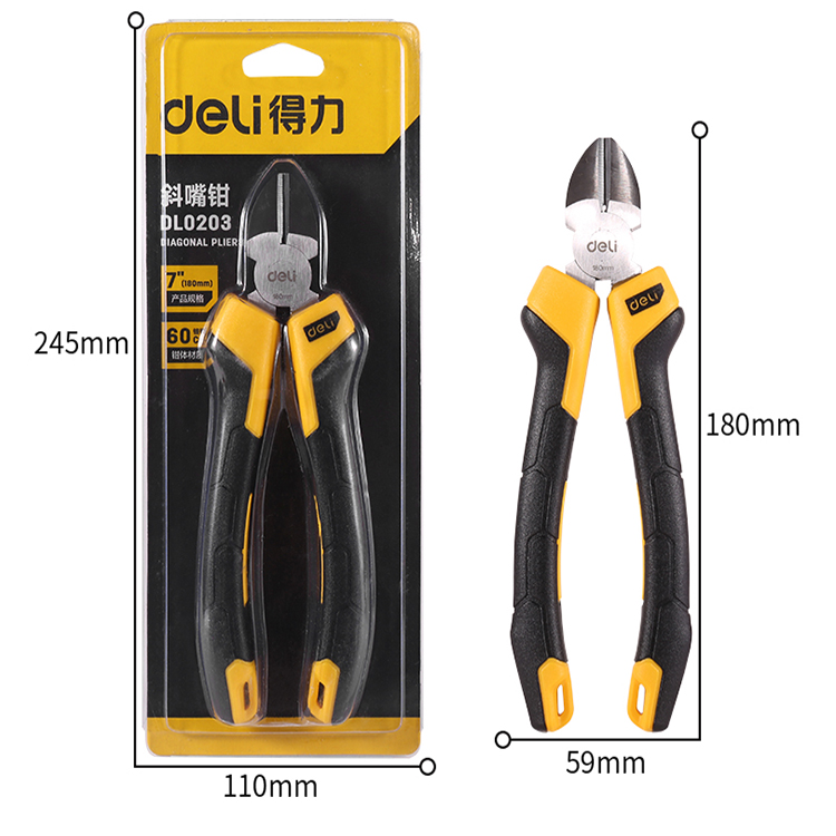 得力牌工具斜口鉗子DL0203五金維修7寸電工鉗剝線鉗